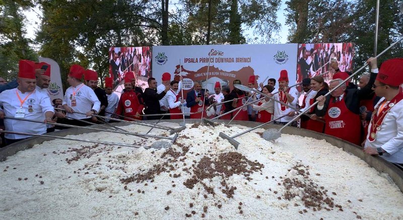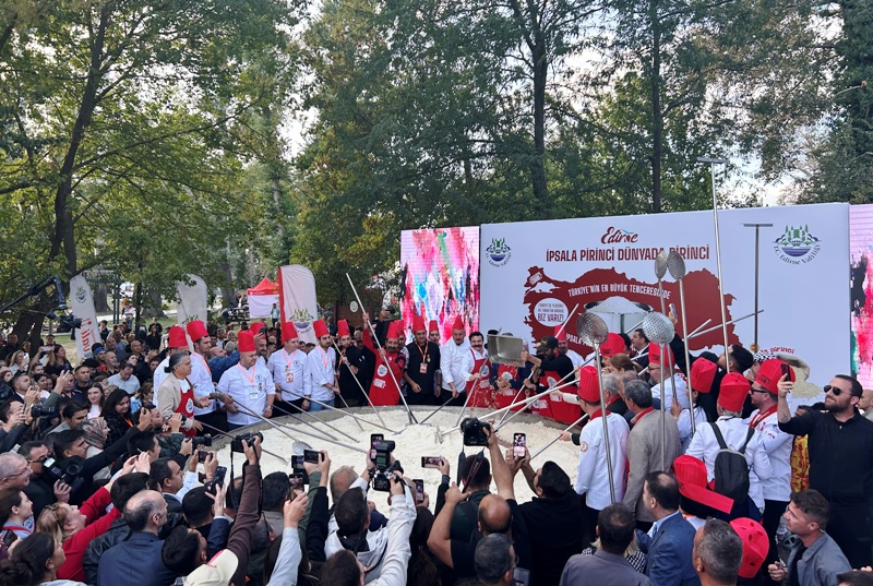 Edirne Valisi Yunus Sezer, eşi Canan Sezer, ünlü aşçılar ve vatandaşların katılımıyla birlikte, coğrafi işaretli İpsala Pirinciyle Türkiye’nin en büyük tenceresinde tam 6 ton pilav pişirildi. Meşhur İpsala Pirinci ile  Türkiye’nin en büyük tenceresinde 6 tonluk Pilav yapımına Türkiye’nin her yerinden gelen vatandaşlar da büyük ilgi gösterdi. Karaağaç yolu üzerinde Meriç Nehri kenarında bulunan Söğütlük Millet Bahçesinde gerçekleşen etkinliğin güzergahında trafiğin adeta kilitlenme noktasına geldiği gözlendi. Çeşitli illerden tur otobüsleri ile Edirne’ye akın eden yerli ve yabancı turistler Türkiye’nin Avrupa’ya bakan yüzü Serhat Şehri Edirne’de tarihi bir gün yaşadı.