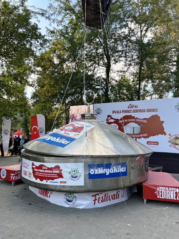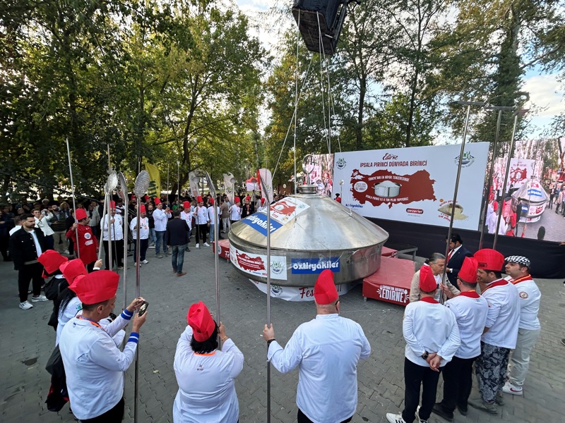 Edirne’de Türkiye’nin en büyük tenceresinde Coğrafi işaretli meşhur İpsala pirinci ile 6 ton pilav yapıldı.  Edirne Söğütlük Millet Bahçesinde gerçekleşen, Topraktan Sofraya Gastronomi Festivali’nde renkli görüntüler yaşandı.  Festivale katılan vatandaşlar unutulmaz bir güne  şahitlik etti.