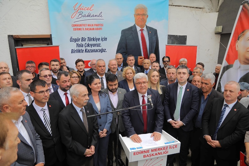 CHP Edirne il örgütünde seçim heyecanı başladı. CHP Edirne İl Başkanlığı için adaylığını açıklayan Yücel Balkanlı, partililere birlik, dayanışma ve mücadele mesajı verdi.