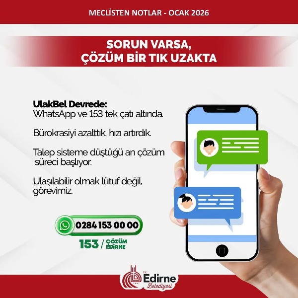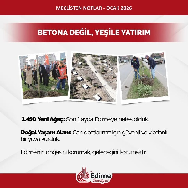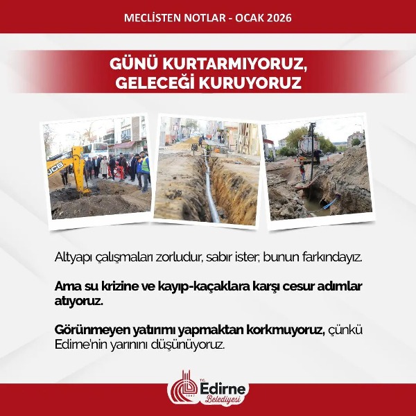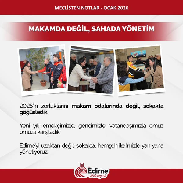 2026 yılı gerçekten belediyemiz için güzel başlayan bir yıl oldu. 2025’i zor geçirdik. Gerçekten zor bir seneydi ama meclisimizin ve mesai arkadaşlarımızın çalışmasıyla ideallerimizi hedeflerimizi ve bundan sonraki yapacaklarımızı planladığımız programladığımız ve hayata geçirdiğimiz yepyeni bir yıla başlıyoruz. O yüzden hem mutluyuz hem de umutluyuz. Edirne Belediyesi inşallah 2026’da daha çok yatırımlarıyla, çünkü biz 2026’yı yatırımlar ve projeler yılı ilan ettik. 2025’te yaptığımız işleri çoğaltarak daha nice güzel işleri hep beraber meclis üyelerimizle mesai arkadaşlarımızla beraber hayata geçireceğiz.”