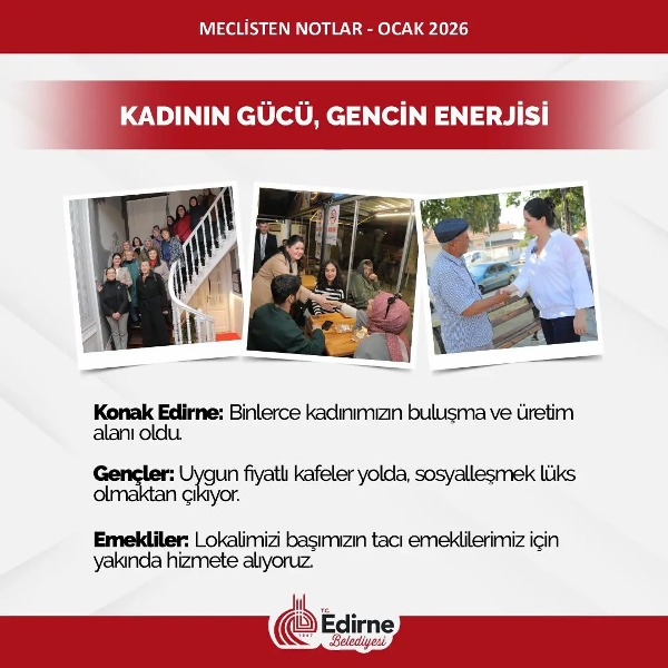 “Edirne Belediye Meclisi’nde 2026 vizyonunu açıklayan Başkan Gencan; 2. Halk Kasap, Emekli Lokali ve Gençlik Kafeleri müjdesini verdi, altyapıda ‘Günü kurtaran değil, geleceği kuran adımlar atıyoruz’ dedi.