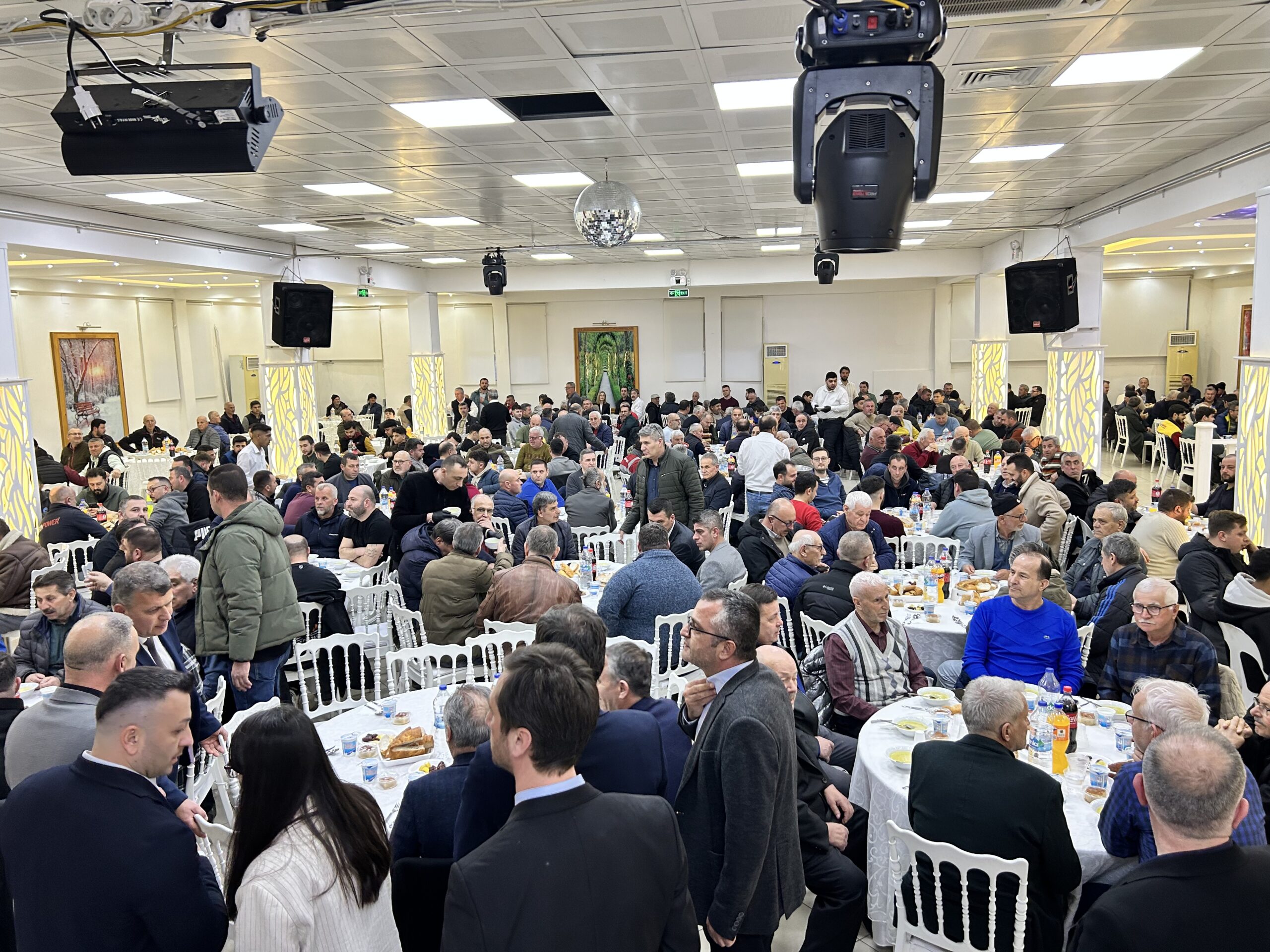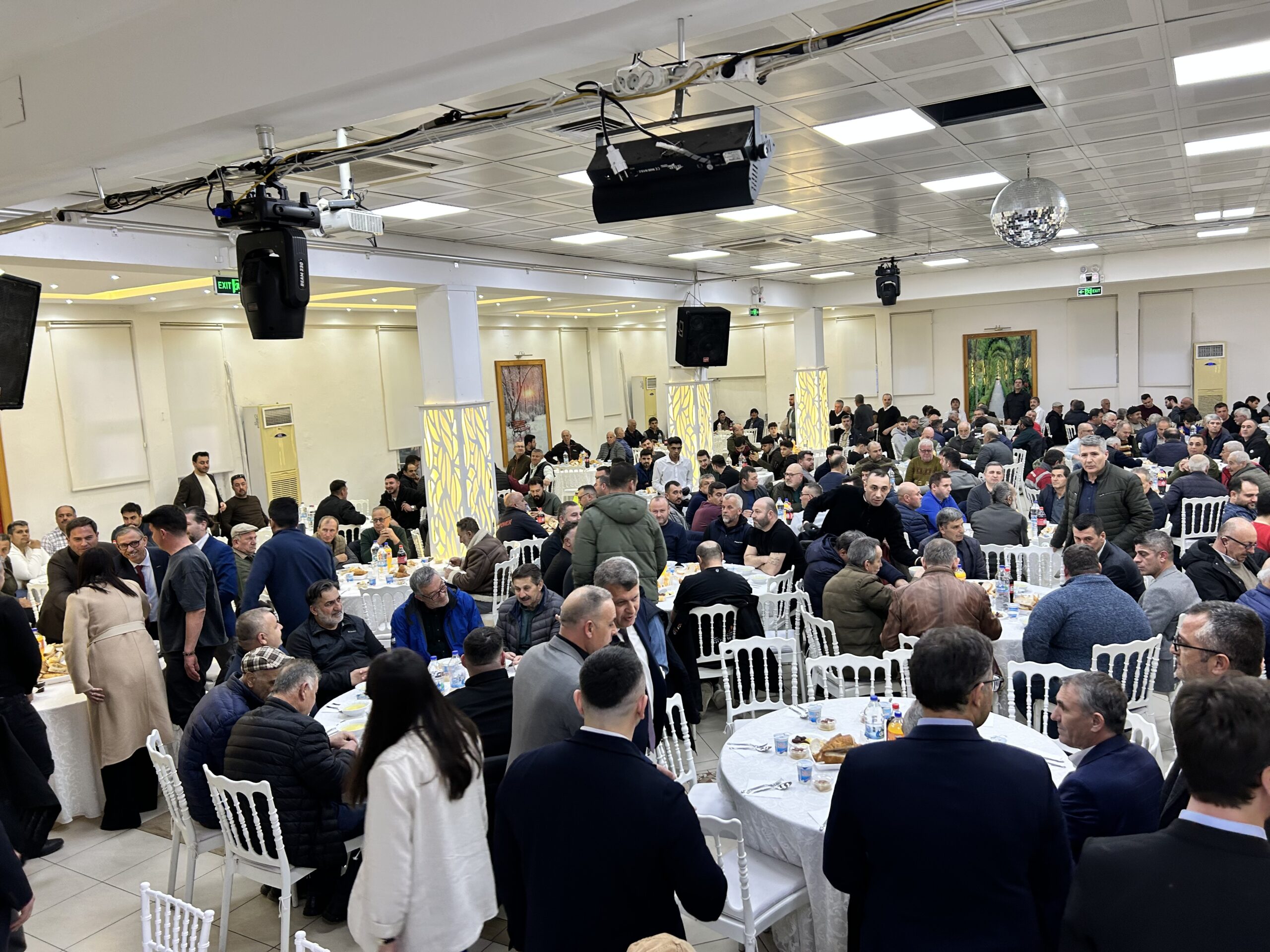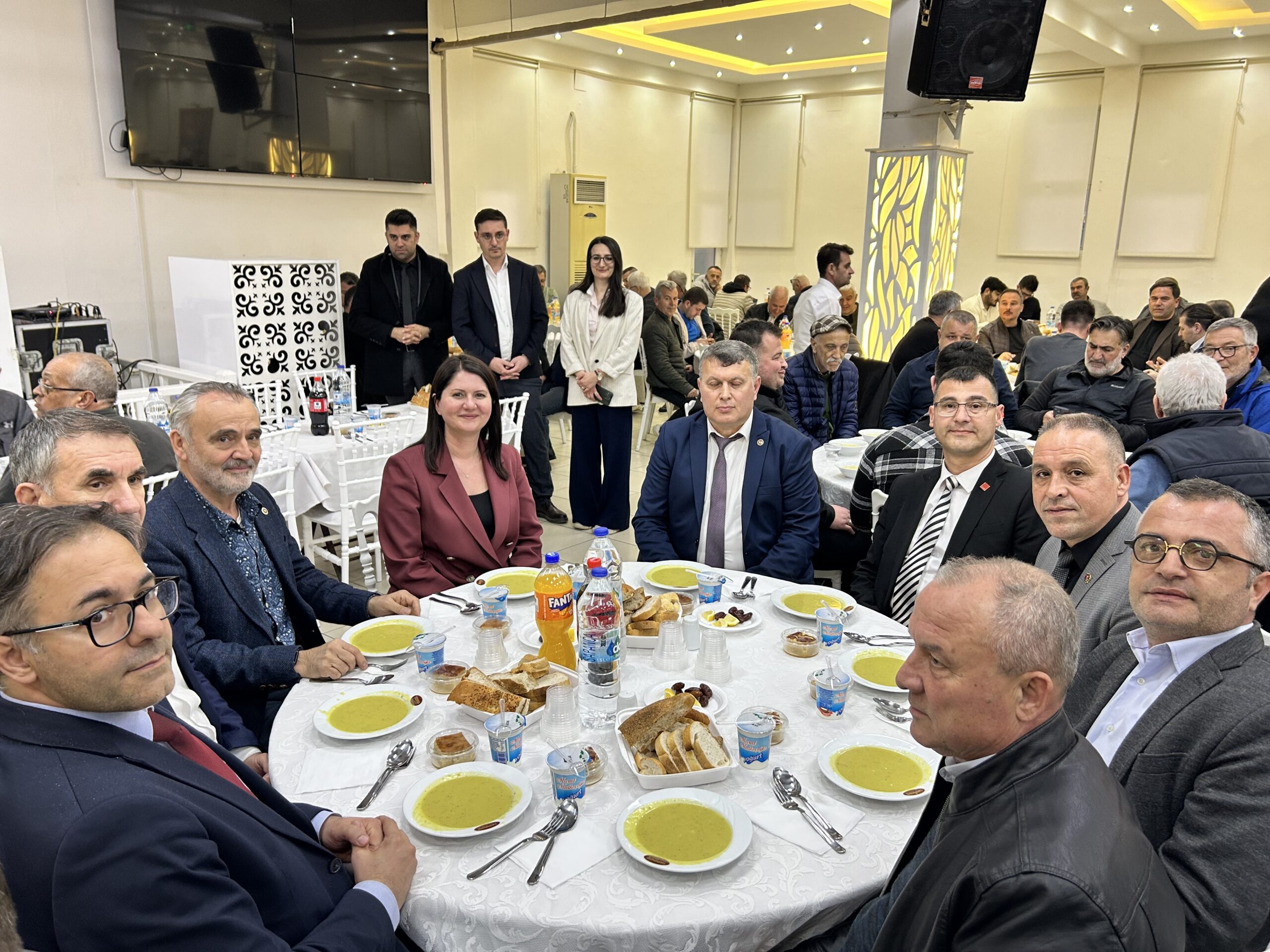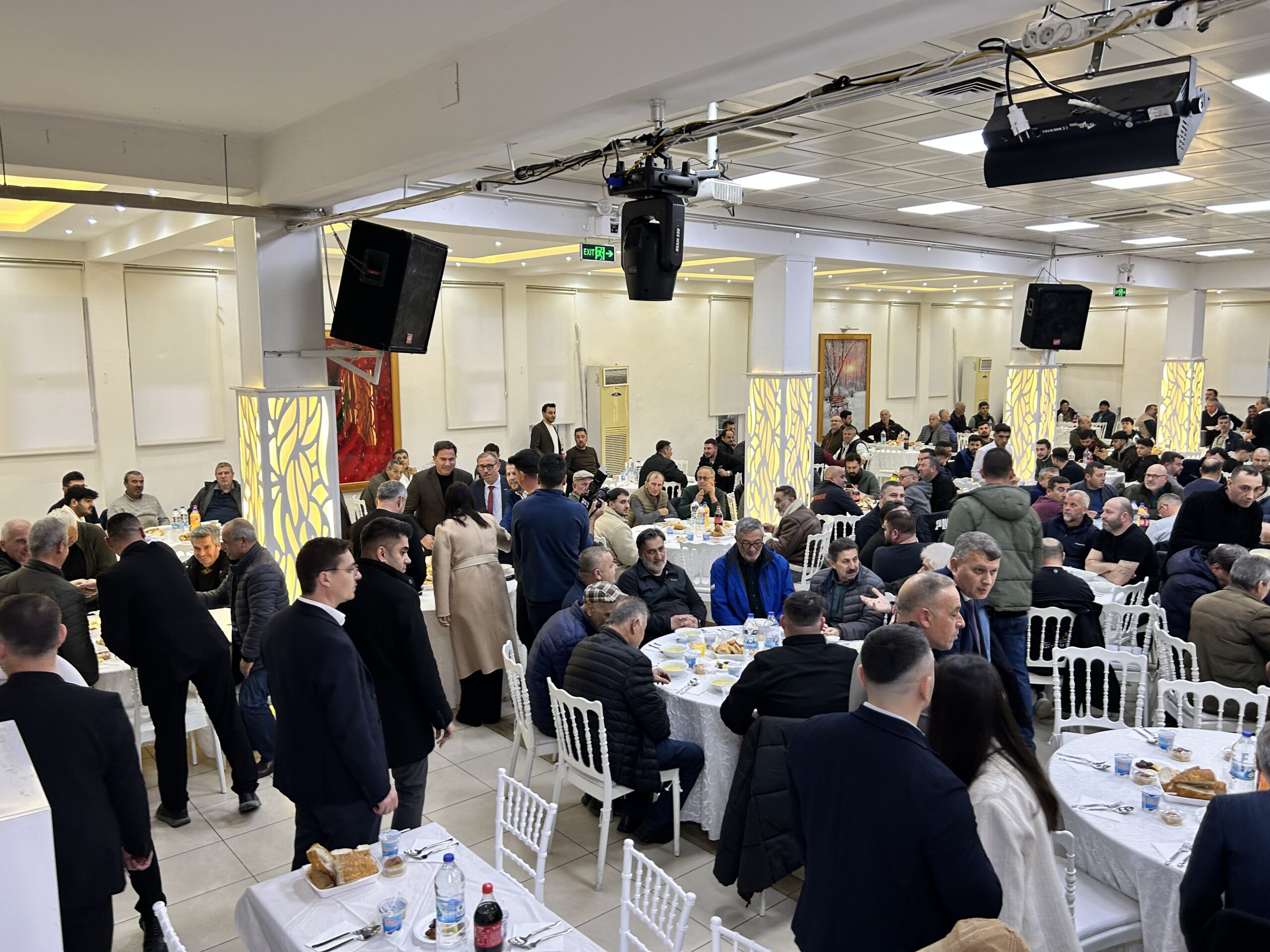 Sanayi esnafının programa gösterdiği yoğun ilgi gecenin en dikkat çeken görüntülerinden biri oldu. Yüzlerce esnafın katıldığı iftar programında düğün salonu kısa sürede dolarken, bazı davetliler koridorlarda kurulan masalarda ağırlanarak iftarlarını açtı.