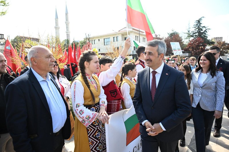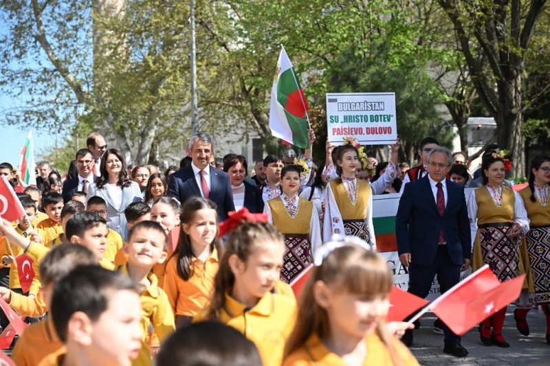 Ziyaretin ardından düzenlenen kortej yürüyüşü, 23 Nisan etkinliklerinin en dikkat çekici anlarından biri oldu. Valilik önünden başlayan yürüyüş, Edirne’nin kalbi Saraçlar Caddesi’ne kadar devam etti.