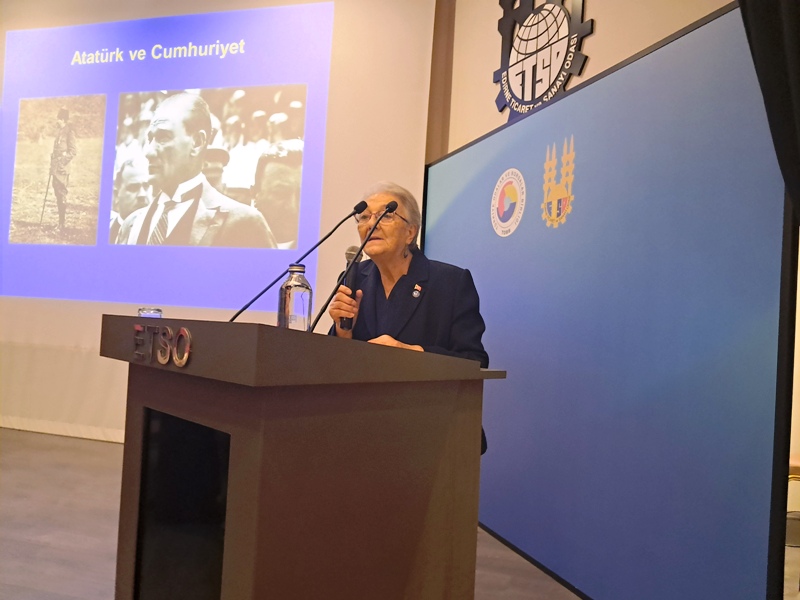 Konuşmaların ardından sahneye çıkan Dr. Naim Babüroğlu, “Atatürk ve Cumhuriyet” başlıklı etkileyici bir söyleşi gerçekleştirdi.