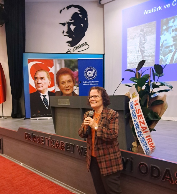 “Bugün burada, Atatürk ve Cumhuriyet üzerine konuşmak benim için onurdu. ÇYDD Genel Başkanımız Ayşe hocama, Edirne Şube Başkanımız Ayten hocama ve tüm Edirnelilere yürekten teşekkür ediyorum. Atatürk demek akıl, bilim, tam bağımsızlık, ama her şeyden önce umut demektir. Tarihin kıskandığı bu liderin kurduğu Cumhuriyet’te doğmak büyük bir şanstır.”