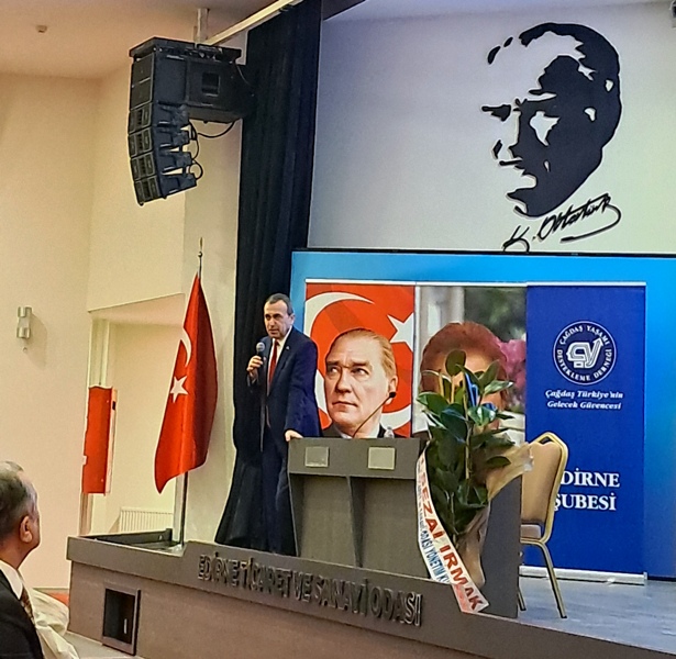 Cumhuriyetimizin kurucusu Gazi Mustafa Kemal Atatürk’ü anmaya hazırlandığımız bu günlerde, Çağdaş Yaşamı Destekleme Derneği (ÇYDD) Edirne Şubesi, büyük bir katılımla anlamlı bir etkinliğe imza attı. “Atatürk ve Cumhuriyet” konulu söyleşinin konuğu, emekli Tuğgeneral ve yazar Dr. Naim Babüroğlu oldu.