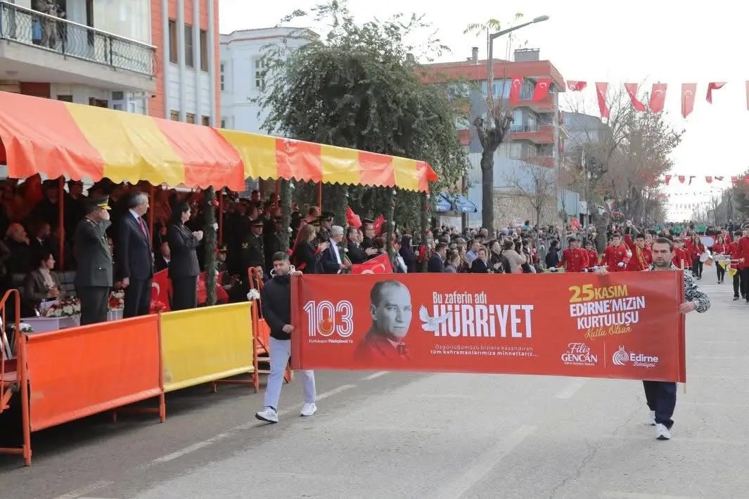 Edirne, düşman işgalinden kurtuluşunun 103. yıl dönümünü büyük bir coşku ve gururla kutlamaya başladı. Kutlamalar, Atatürk Anıtı’na çelenk sunma töreni ve ardından gerçekleşen resmi geçit töreni ile start aldı. Törende konuşan Edirne Belediye Başkanı Filiz Gencan, Edirne’nin direncini ve Cumhuriyet’e olan bağlılığını vurgulayarak, “Edirne dün geri adım atmadı. Bugün de atmıyor. Yarın da asla atmayacak!” dedi.