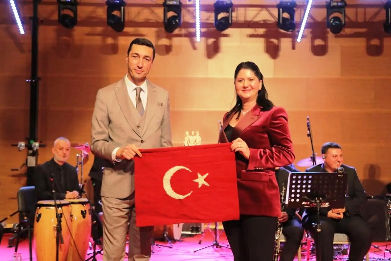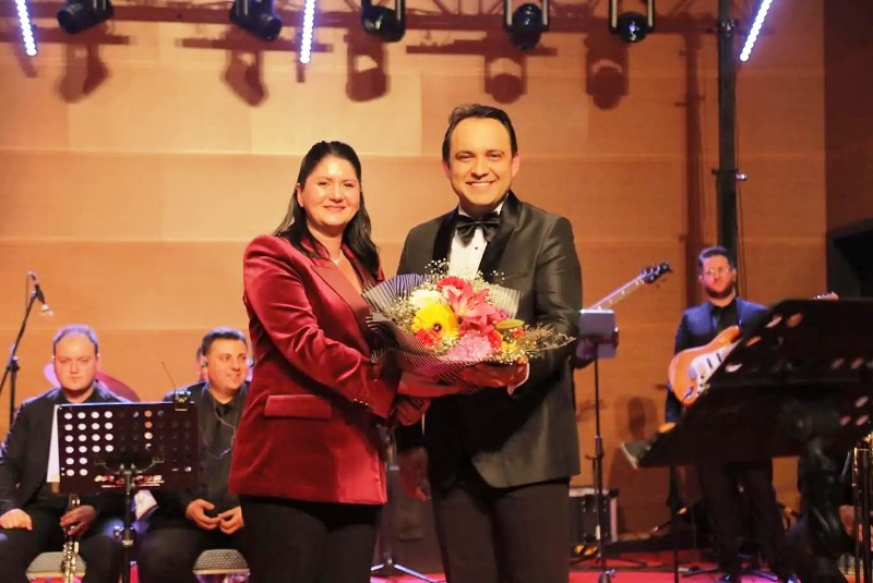 Edirne Belediye Başkanı Filiz Gencan, konser sırasında sahneye çıkarak “Yiğidim Aslanım” eserine eşlik etti ve program sonunda orkestraya çiçek takdiminde bulundu.