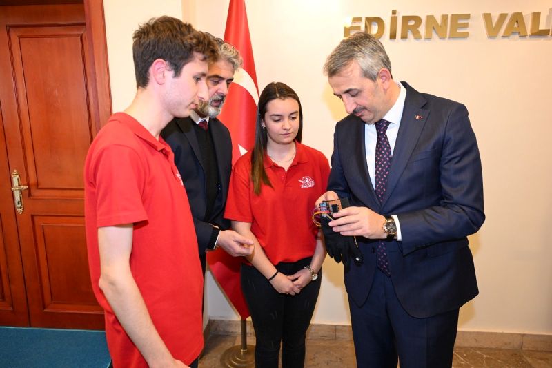 Edirne’de eğitim gören gençlerin bilim ve teknoloji alanındaki başarıları dikkat çekmeye devam ediyor. İlhami Ertem Anadolu Lisesi öğrencilerinin oluşturduğu İstikbal Teknoloji Takımı, geliştirdikleri projeleri tanıtmak amacıyla Yunus Sezer’i makamında ziyaret etti.