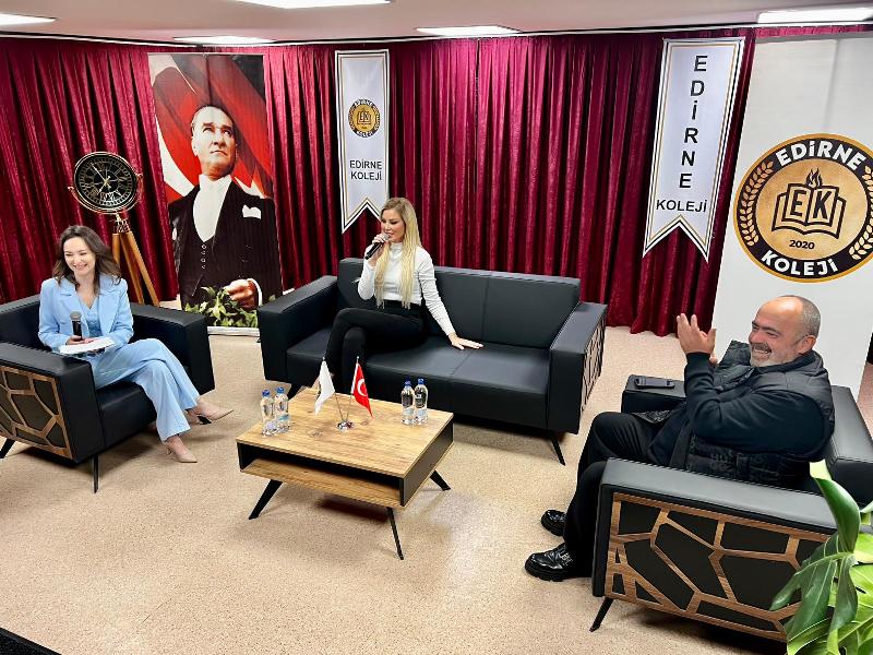 Edirne Koleji’nin gençlerin ufkunu açmayı hedefleyen “Gençlere İlham Verecek Meslekler” etkinliği, bu hafta sanat dünyasının sevilen ismi Petek Dinçöz’ü ağırladı. Yıldızlar geçidi niteliğindeki programda Dinçöz, öğrencilerle buluşarak hayat deneyimlerini, anneliğe bakışını ve başarıya giden yolda mutluluğun önemini samimi bir dille paylaştı.