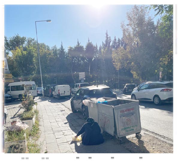 TBMM Ayrancı Kapısı’na 10 metre mesafedeki bir çöp konteynırının yanında yemek arayan bir kadının fotoğrafını kürsüden AKP sıralarına gösteren Yazgan, AKP sıralarının boş olmasına da işaret ederek, şöyle konuştu: